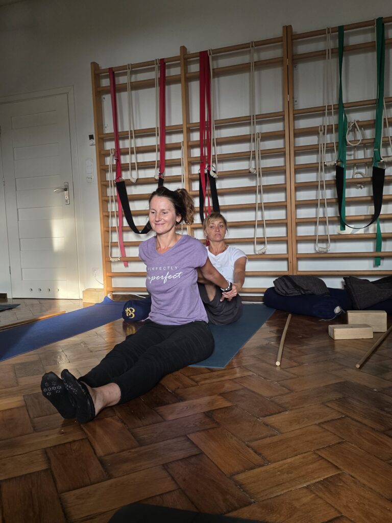 Społecznie – bo to nie tylko joga, to też wspólnota. Cicha, wspierająca obecność innych rodziców, którzy czują podobnie.