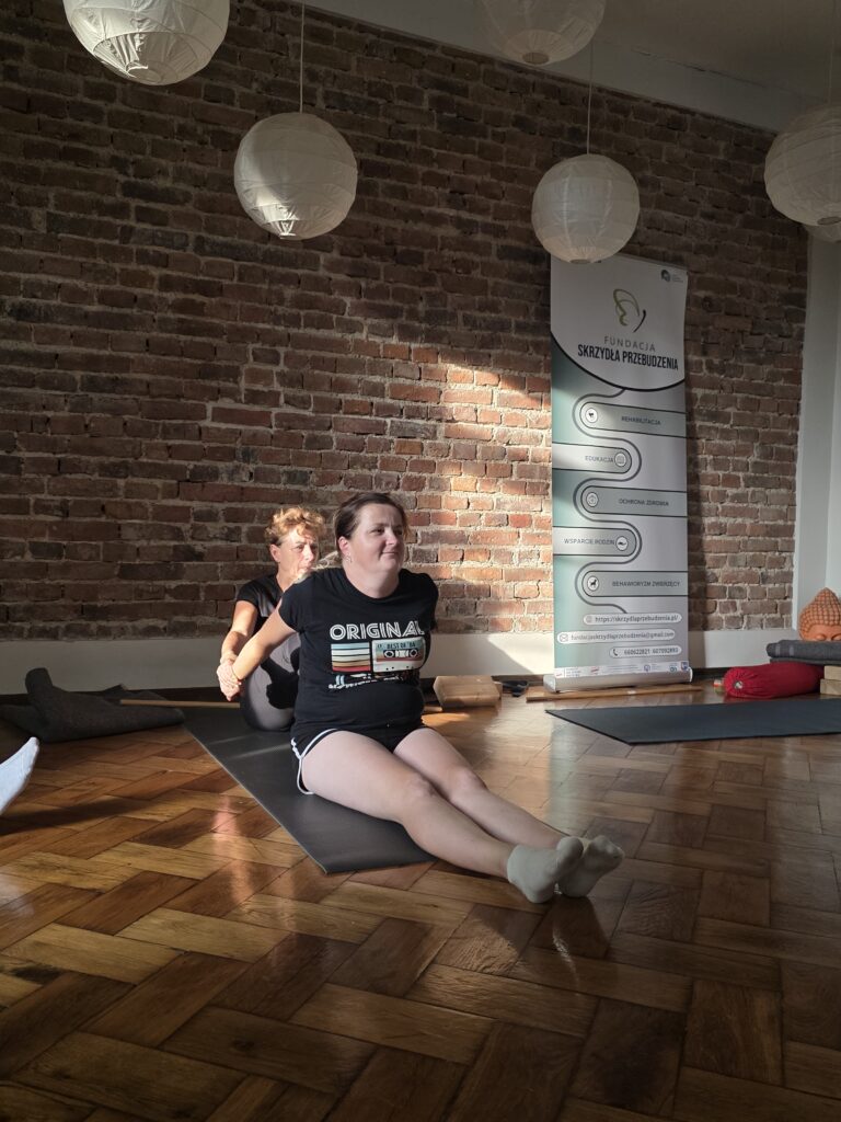 Dziś kolejne zajęcia z jogi i oddechu dla rodziców biorących udział w naszym projekcie.