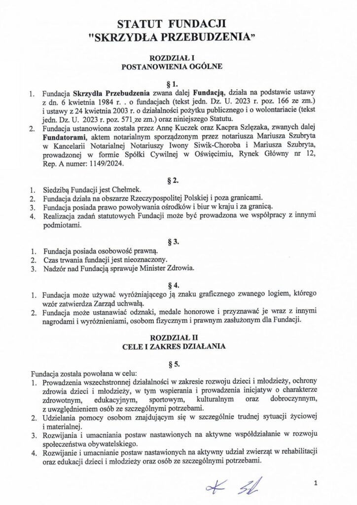 Statut Fundacji to podstawowy dokument określający zasady działania naszej organizacji, jej cele, strukturę oraz sposób funkcjonowania. Jest to swego rodzaju konstytucja fundacji, która reguluje jej działalność, zapewnia przejrzystość i gwarantuje zgodność z obowiązującymi przepisami prawa. Dzięki statutowi, możecie lepiej zrozumieć misję i wartości, które nami kierują.